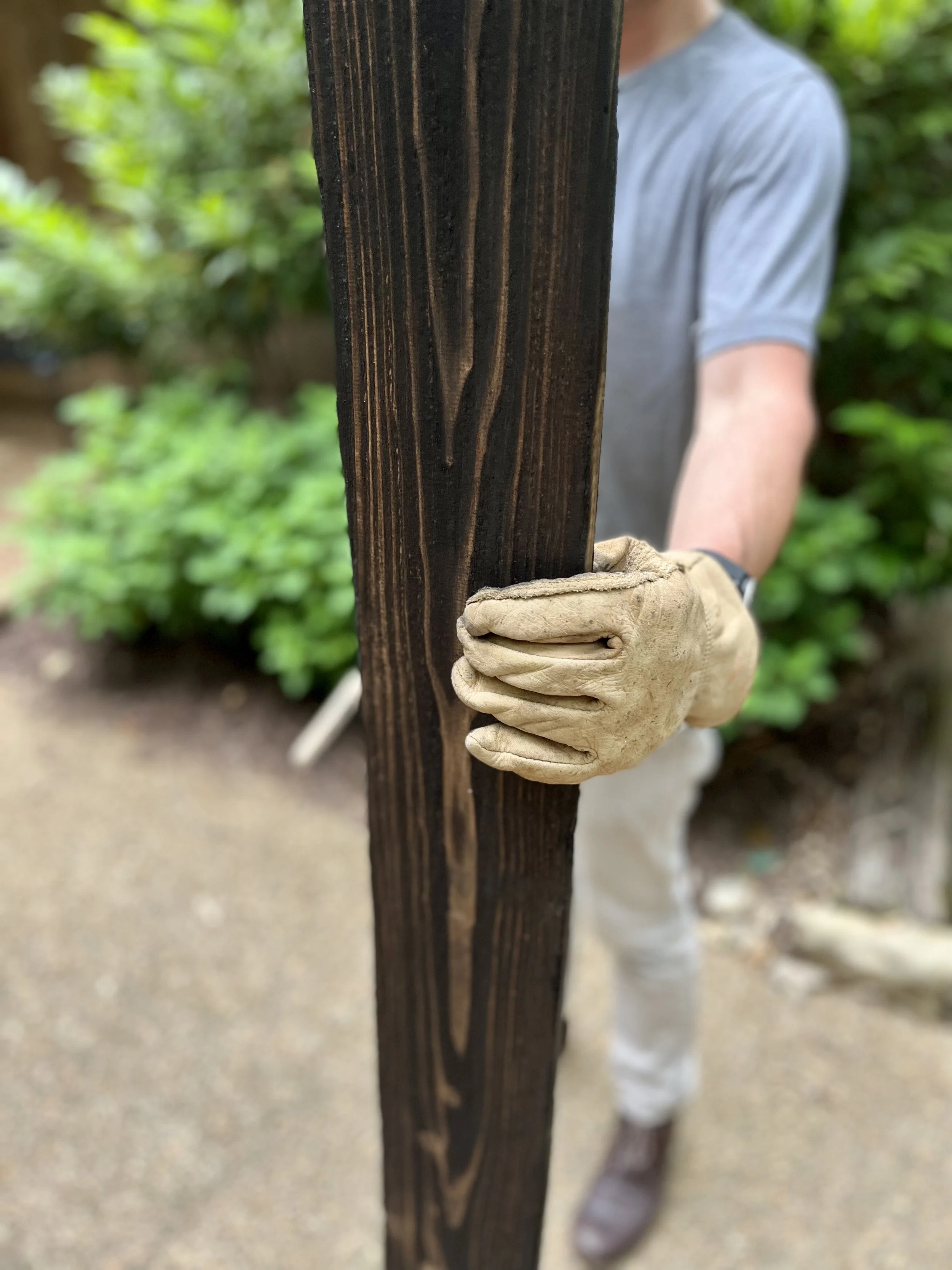 Shou Sugi Ban is an ancient Japanese technique that preserves cedar with the very force that might also destroy it: fire. Charring the wood to just the right degree of burn activates the natural oils that help weatherproof it and dramatizes the natural beauty of the grain. We began by framing in the shower, allowing for a 4 x 4 wet area and bench. Laying the cedar blanks side by side, we used a blow torch with 80,000 btu to char each plank on both sides, as well any ends that would be visible once built. A nylon bristle brush removed thick layers of ash, readying the planks for installation. Builder details include stainless steel finish screws for ease of replacement and durability and an oil-based polyurethane clear coat painted on to seal in the ash and give the shower a mild sheen.